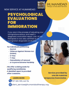 Our team member, Noemi Degante Blancas is a licensed marriage and family therapist (LMFT 149946) and certified as an immigration diagnostic evaluator.